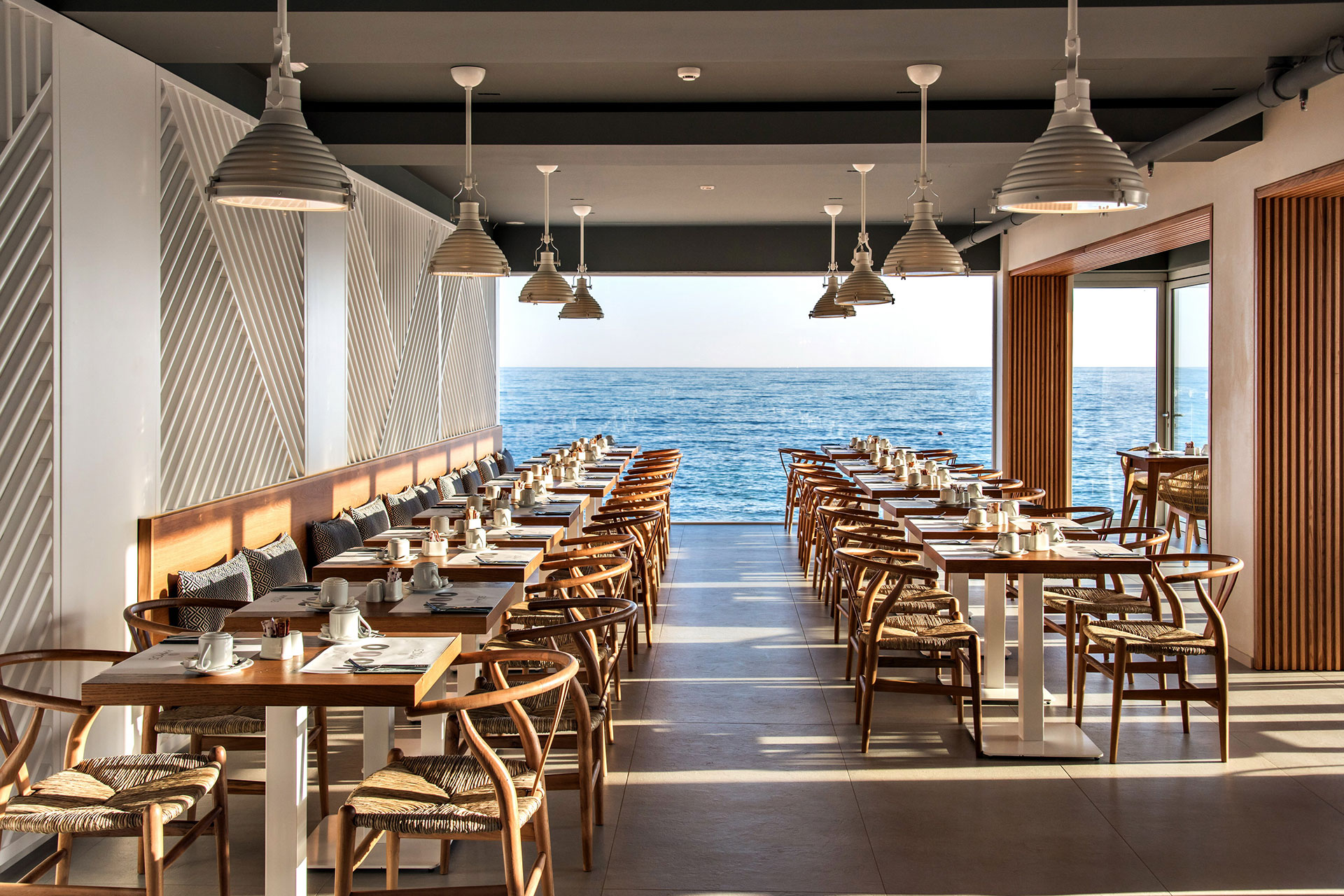 Enorme Ammos Beach offers a wide range of food and beverage outlets to satisfy every preference. The Main Restaurant serves breakfast and dinner, while the Bikini Beach Bar delivers international snacks, sushi selections and Asian fusion dishes directly to gazebos and sunbeds via call-button service. Guests can also enjoy our à la carte restaurant once per stay, complimentary, savoring carefully crafted dishes. Our bars serve refreshing fizzes and signature cocktails — which can even be enjoyed on your private balcony.