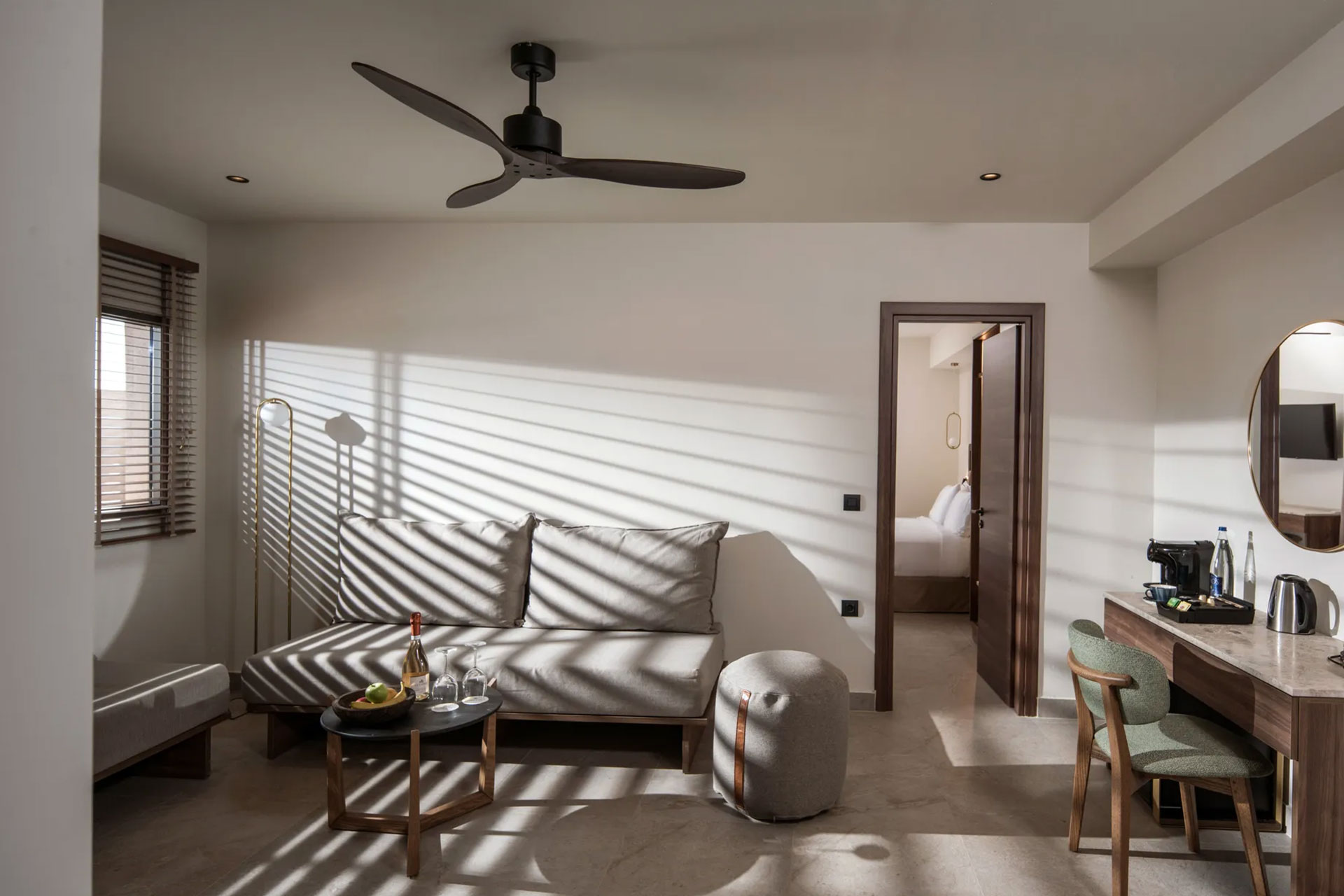 Guests can unwind by the infinity pool, enjoy crafted cocktails, and savor Mediterranean cuisine made with fresh local ingredients.