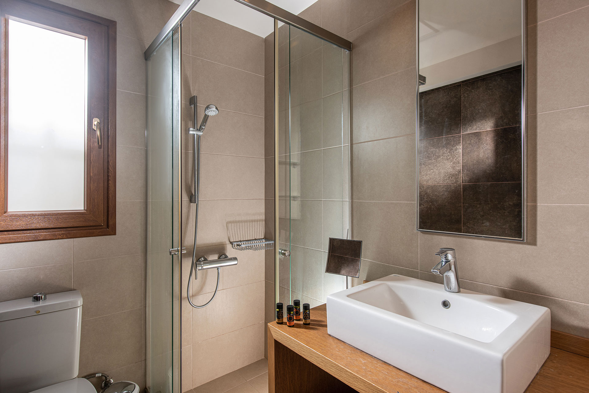 The spacious patio offers panoramic vistas, complemented by a refreshing heated swimming pool (available upon request), creating moments of pure serenity and relaxation. The villa accommodates up to 8 guests across three luminous bedrooms, two of which feature private en-suite shower rooms. Thoughtful interior details, abundant natural light, and carefully placed plants reflect the owner’s flair for harmonizing nature with sophisticated design.